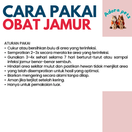 - Hindari area mulut dan pastikan hewan tidak menjilat sebelum kering.