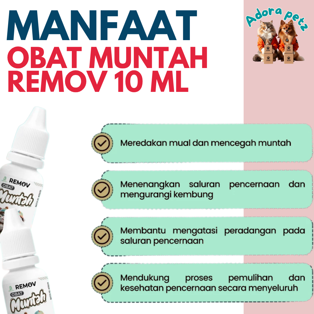 Kini kamu tidak perlu bingung lagi ketika hewan kesayangan muntah mendadak. Siapkan REMOV di rumah sebagai pertolongan pertama, sehingga kamu bisa menanganinya lebih cepat sebelum kondisinya memburuk.