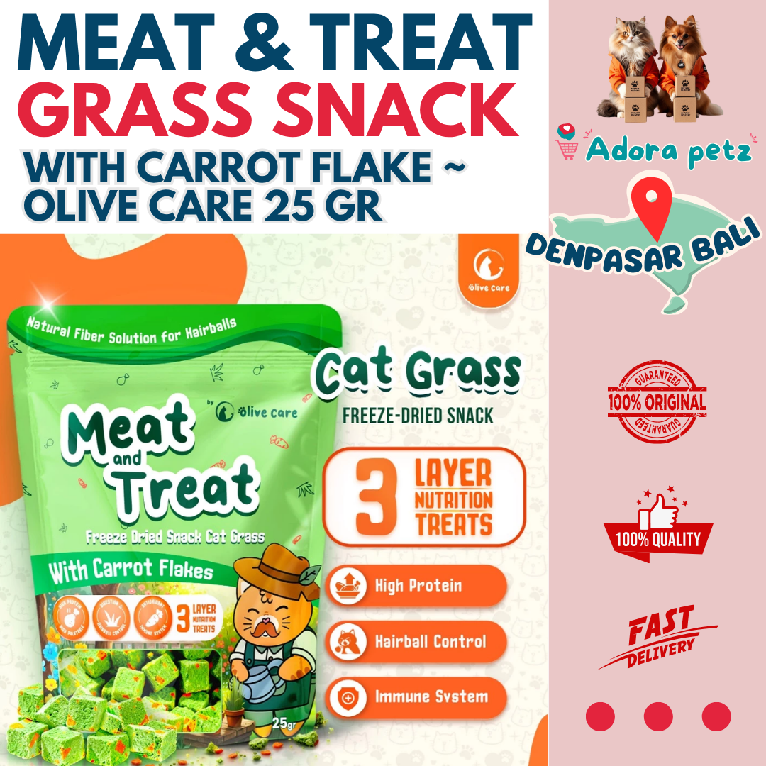 BARU! Meat & Treat Freeze Dried Cat Grass Cube with Carrot Flakes!