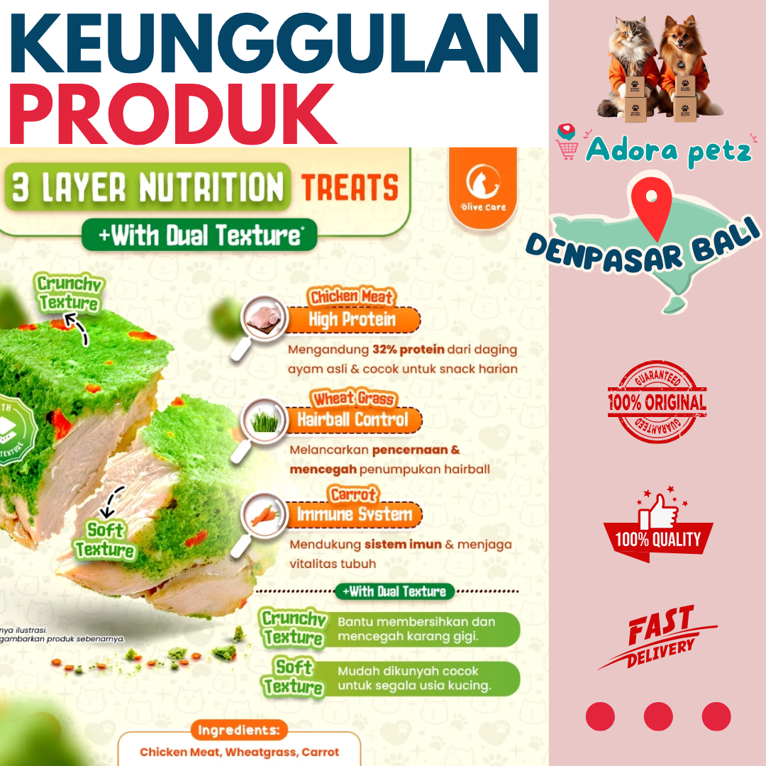 2. Meningkatkan nafsu makan. Aroma dan rasa yang gurih dari daging ayam asli yang disukai kucing.