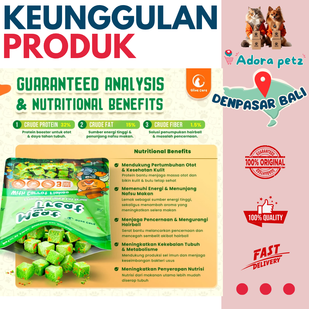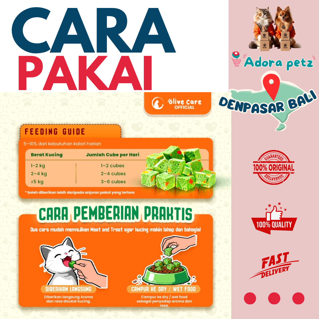 1. Jika kucing belum pernah konsumsi cemilan freeze dried atau cat grass, berikan 1 cube terlebih dahulu pada dua hari pertama. Berikutnya bisa mengikuti panduan sesuai Berat Badan.