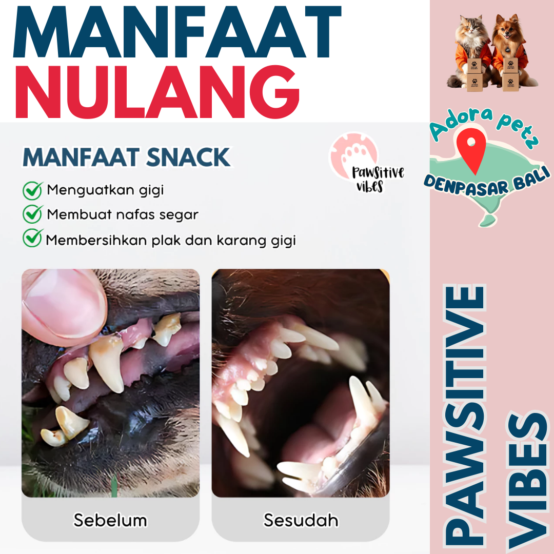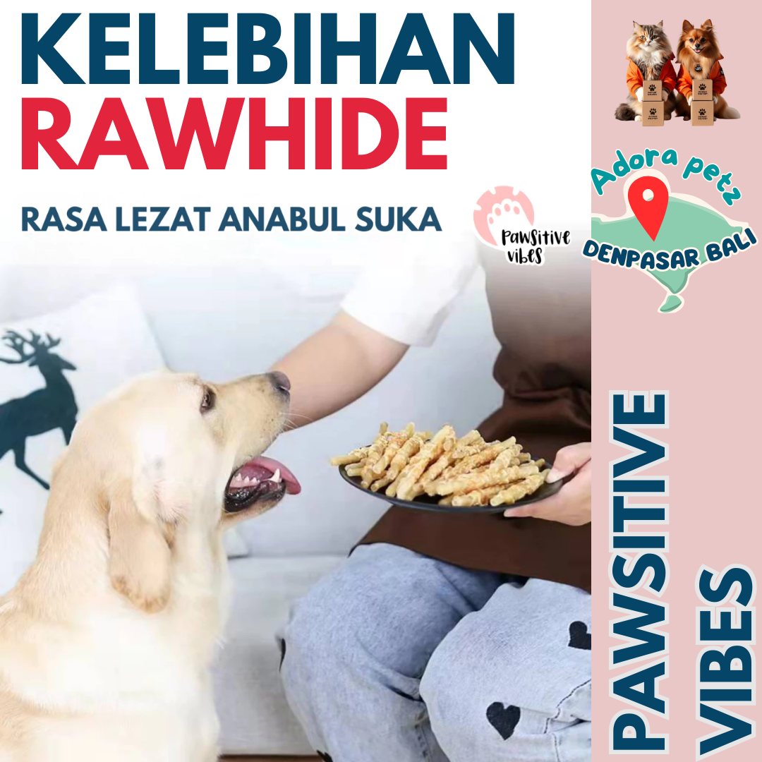 Rawhide Pawsitives – Camilan Sehat, Gigi Kuat! Biar gigi bersih, nafas segar, dan sandal tetap aman dari gigitannya! Snack tulang natural dari kulit sapi berkualitas, cocok untuk anjing di masa tumbuh gigi (3–6 bulan) dan semua anjing yang doyan ngunyah.